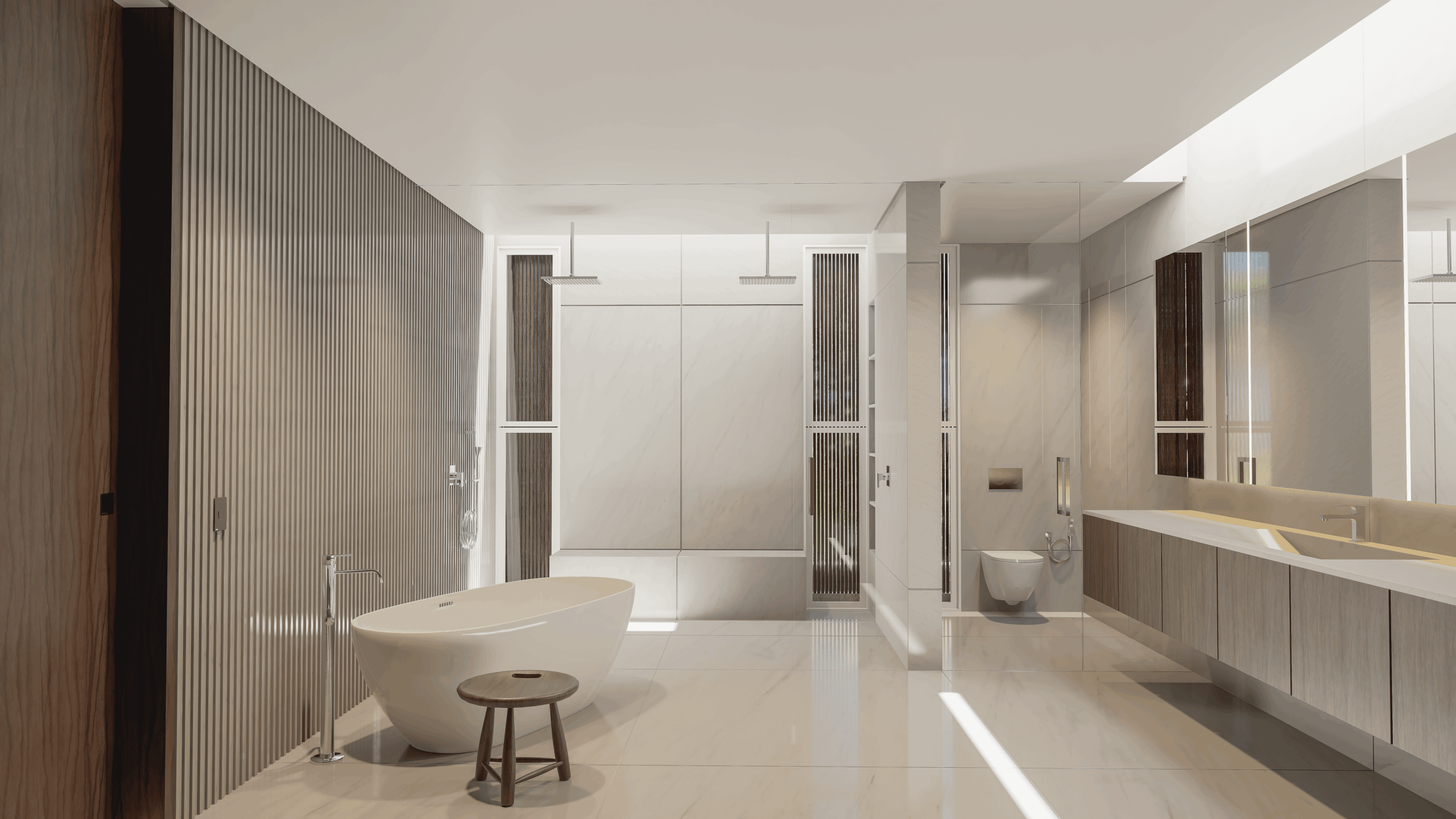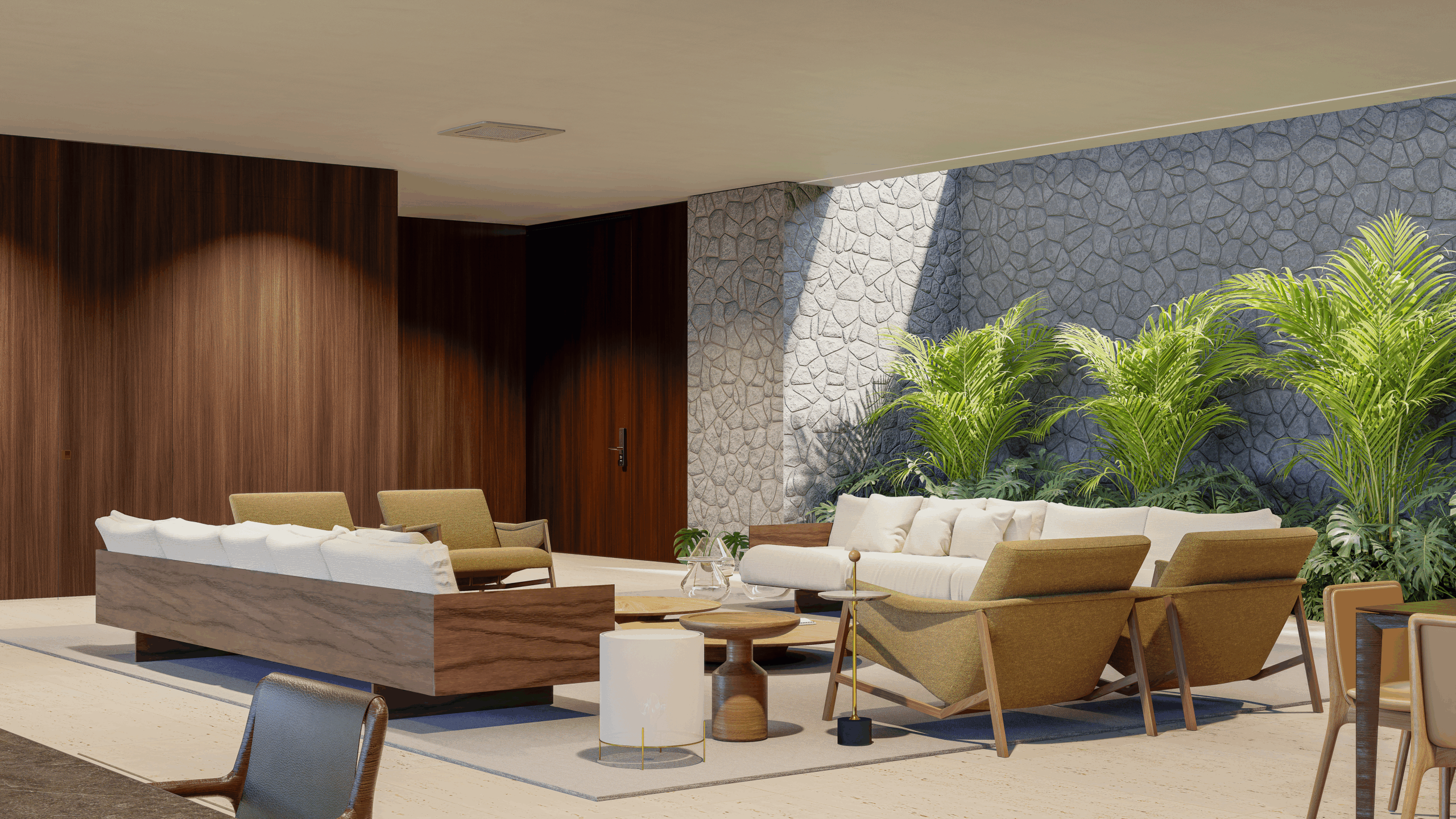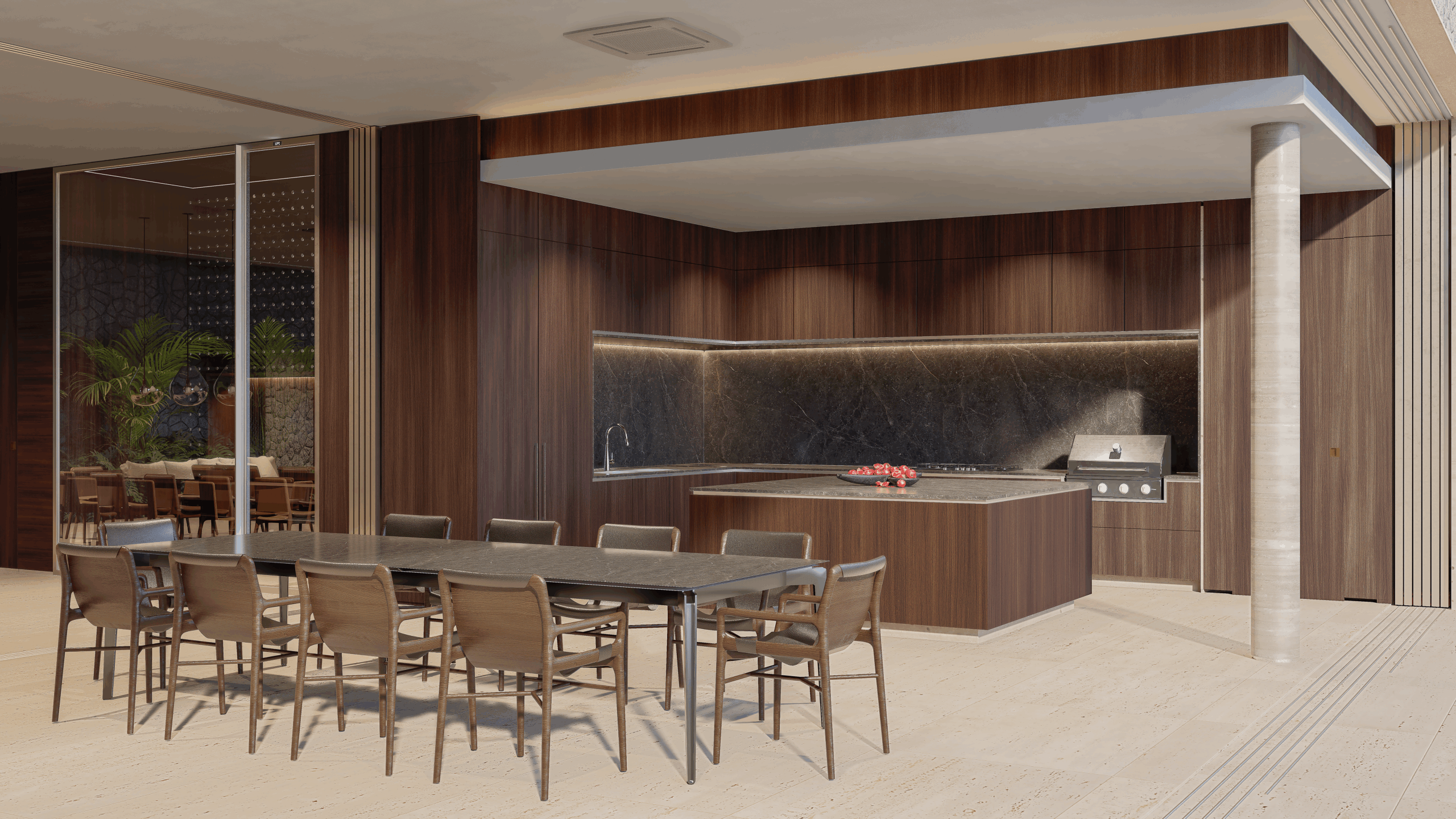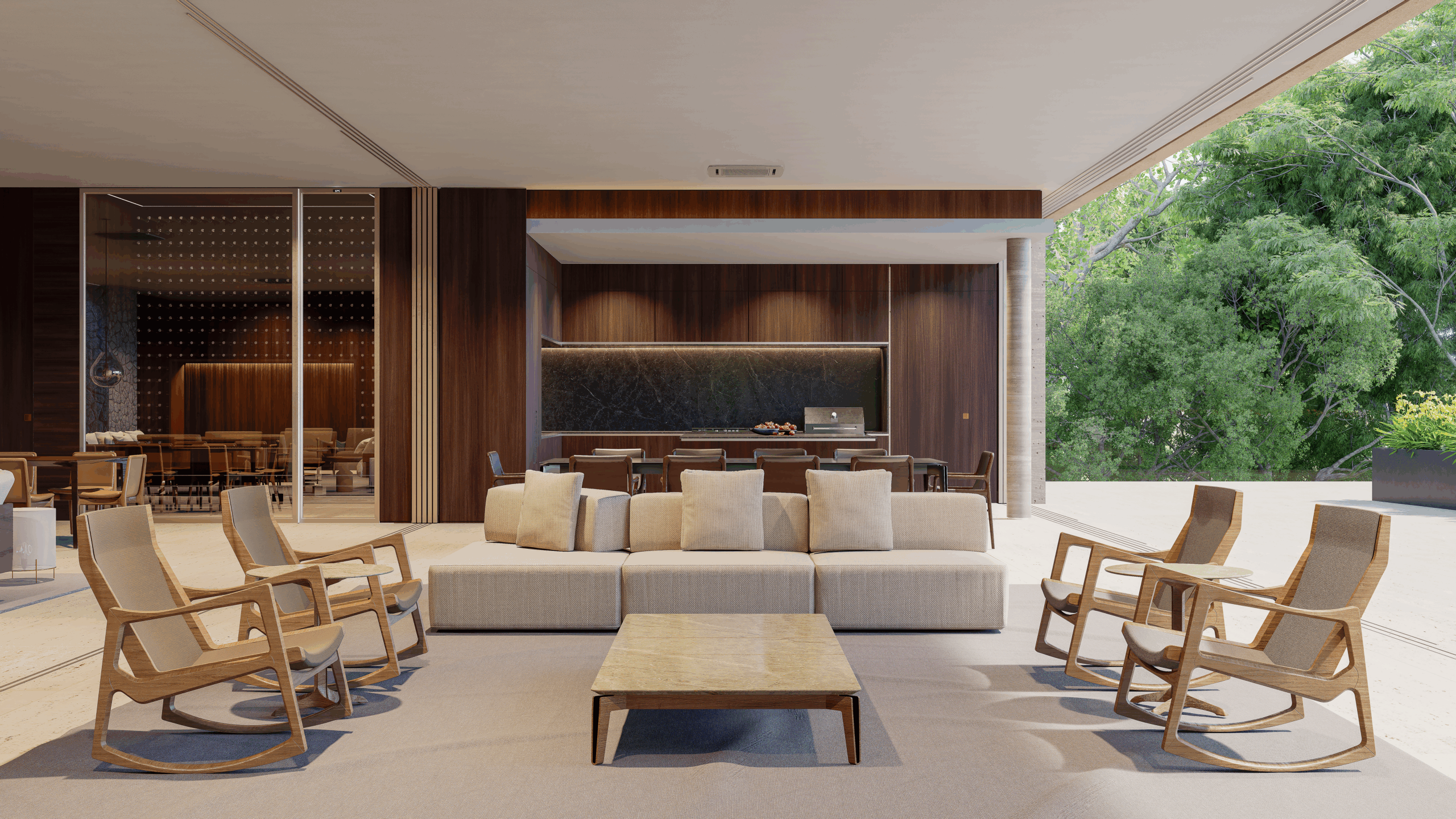 2 – Térreo – hall, lavabo, escritório com banheiro, adega, living, jardim de inverno, home theater, sala de jantar, cozinha, louceiro, despensa, varanda gourmet, sala de almoço, piscina com prainha e hidromassagem, banheiros externos, sala de automação e elevador.