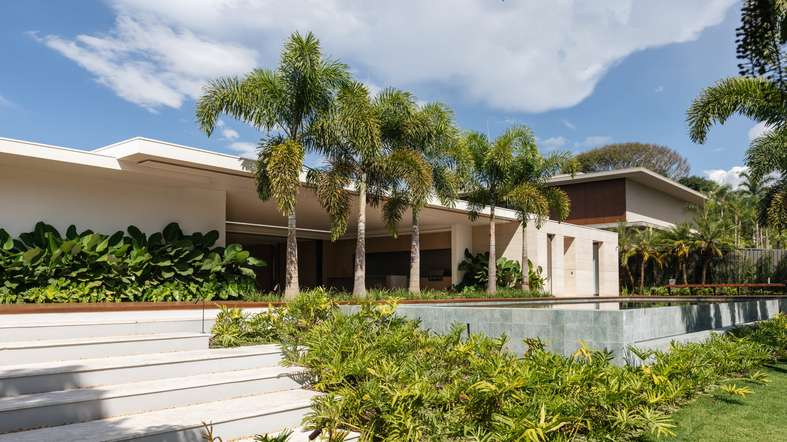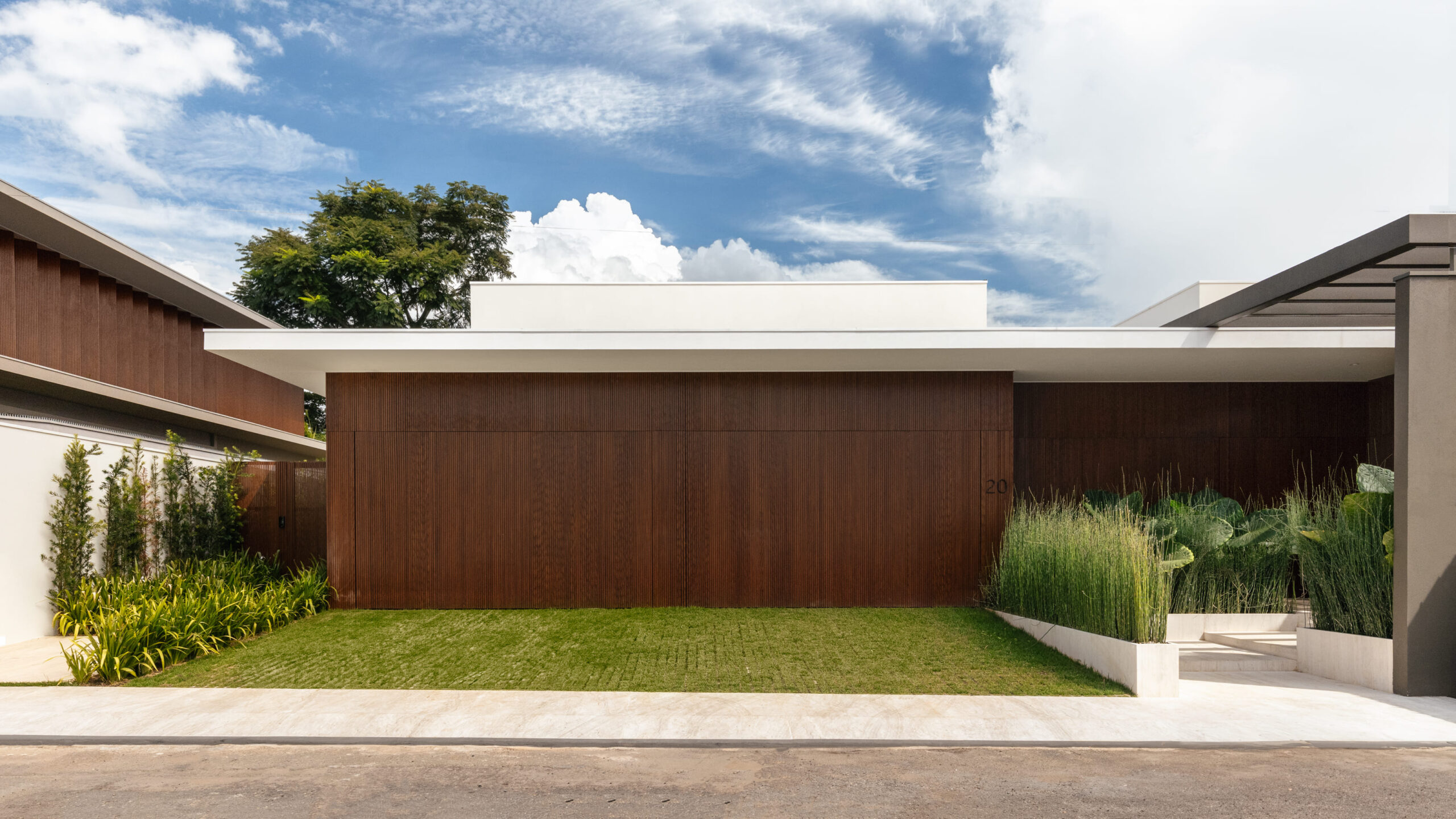 Gramado e paisagismo com irrigação automatizada.